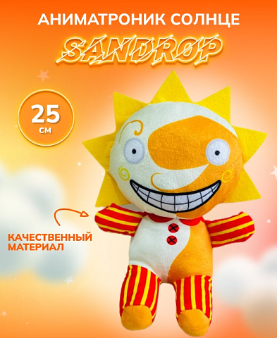 Мягкие игрушки аниматроники Солнце Sundrop (Сандроп) и Луна Moondrop (Мундроп) из популярной компьютерной игры Fnaf (Фнаф). Солнце из фнаф и Луна из фнаф станет отличным подарком поклоннику игры Фнаф. Игрушка аниматроник фнаф выполнена из гипоаллергенного материала, мягкая и приятная на ощупь, наполнена холлофайбером, без посторонних запахов. Кошмарный аниматроник солнце из фнаф и луна из фнаф порадует малыша и украсит интерьер детской комнаты. Игрушки фнаф размером 25 см. FNAF солнце и луна. Аниматроники стали одними из самых популярных игрушек у детей, персонажи игры FNAF SANDROP/ MOONDROP придутся по душе поклонникам игры. Мягкая игрушка фнаф солнце и луна.