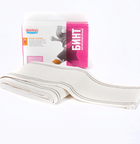 Бинт магнитоэластичный высокой степени растяжимости применяется для профилактики и комплексной терапии хронических венозных воспалительных процессов в до и послеоперационный периоды, для лечения остеохондроза и снятия отеков, профилактики образования гематом, растяжения мышц и связок, для лечения травм, связанных со спортом. Противопоказания: острые нарушения мозгового и коронарного кровообращения (острый инсульт, инфаркт); заболевания, связанные с нарушением свертываемости крови; беременность (любые сроки); индивидуальная непереносимость;