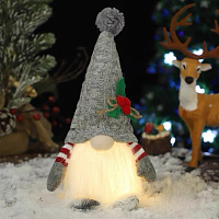 Светильник Гном с СЕРОЙ ШАПОЧКОЙ 28см