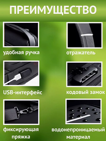 Сумка мужская дорожная через плечо выполнена из влагоотталкивающей и водостойкой ткани. Вместительная и легкая сумка ручная кладь уместит все необходимые принадлежности. Сумка рюкзак для документов, планшета, телефона, зонта или книг с лямкой на одно плечо, которая переносится на левую или правую сторону. В отпуске или путешествиях вещи будут под надежной защитой кодового замка.
